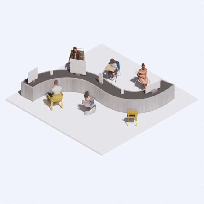 Instead of walking up to the piece, the art comes to you. Take a seat and enjoy while the pieces slowly come to you.